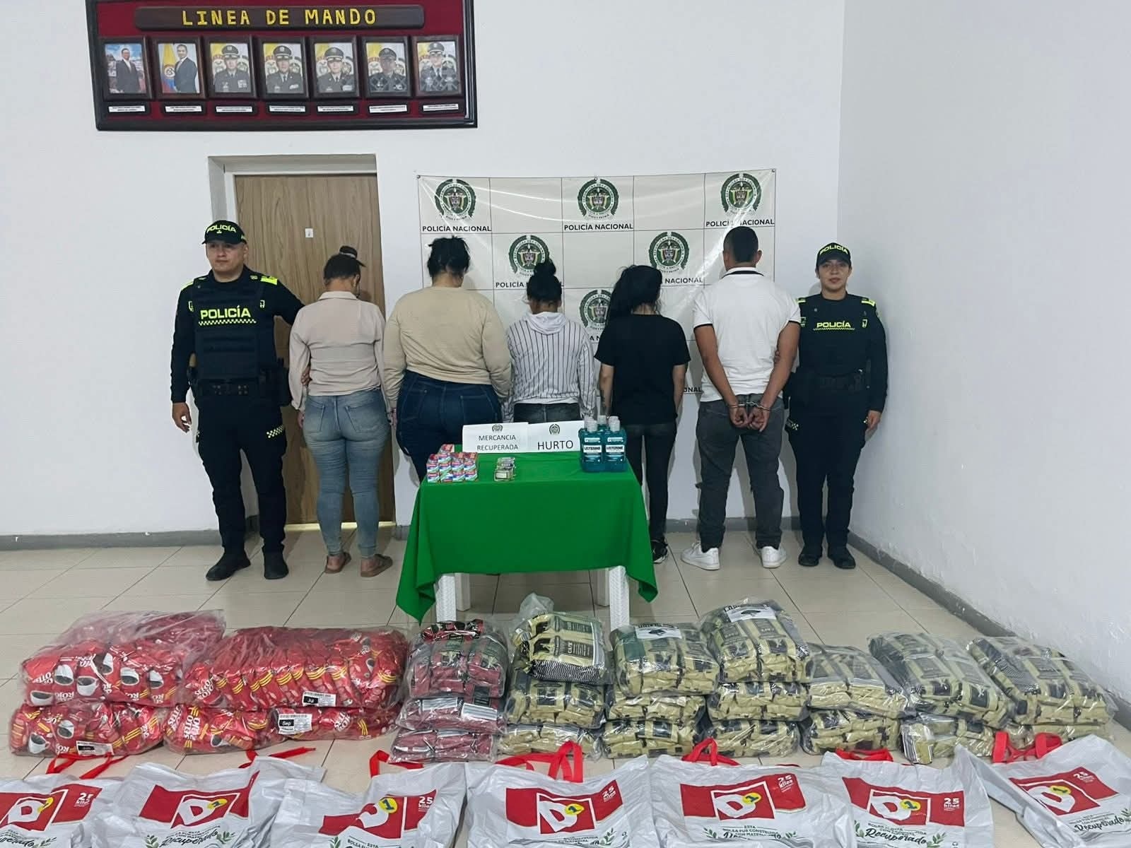 La Policía Nacional, a través de la Estación de Policía Tocaima, logró la captura de cinco personas presuntamente implicadas en un hurto cometido en un almacén D1 del municipio de Agua de Dios.