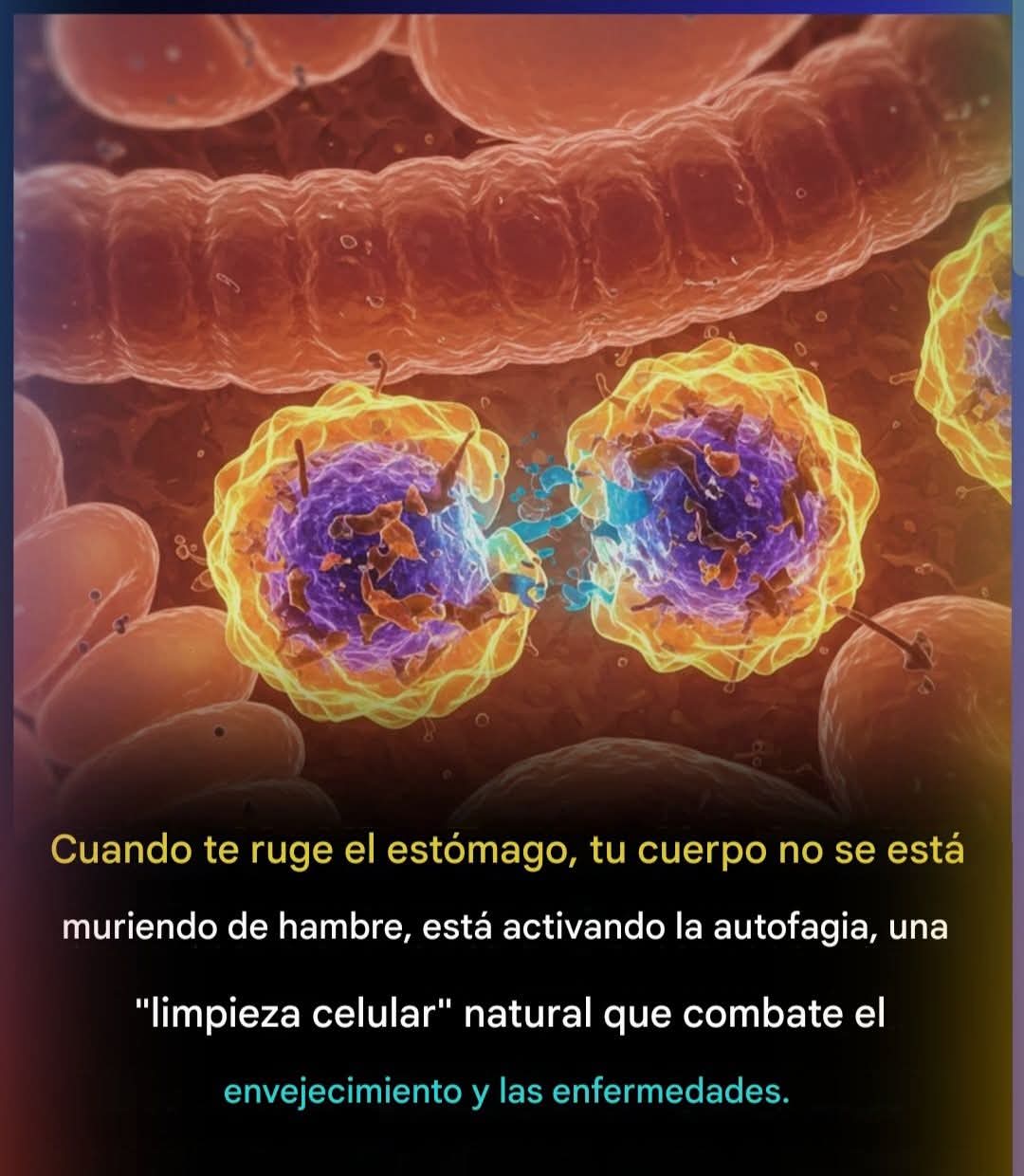 Cuando tu estómago gruñe, no es sólo hambre, es tu cuerpo activando la autofagia, un proceso biológico que literalmente significa «autocomer. Este notable sistema permite a tus células descomponer componentes viejos, dañados o tóxicos y reciclarlos en energía limpia y utilizable. Después de unas 14-16 horas sin comida, los niveles de insulina disminuyen y tu cuerpo pasa de la digestión a la reparación celular profunda. Las mitocondrias se refrescan, las proteínas mal dobladas se eliminan y los residuos celulares se desmantelan dejándote con células más sanas y eficientes. Este proceso puede incluso reducir el riesgo de Alzheimer, Parkinson y diabetes tipo 2.La autofagia no es una tendencia de bienestar, es una ciencia ganadora del premio Nobel. En 2016, el Dr. Yoshinori Ohsumi recibió el Premio Nobel por descubrir los mecanismos detrás de él. Desde entonces, la investigación ha demostrado que el ayuno intermitente u ocasional ayuno de 24 horas puede impulsar la salud del corazón, reducir la inflamación, mejorar la cognición, mejorar la función metabólica y ralentizar ciertos signos de envejecimiento. Los subproductos de la autofagia – aminoácidos, azúcares, ácidos grasos no se desperdician; tu cuerpo los recicla para construir células nuevas y más fuertes o para alimentar funciones esenciales. Es el restablecimiento interno definitivo.En muchos sentidos, el hambre es curación. Nuestros antepasados ayunaron naturalmente durante los períodos de escasez de alimentos, permitiendo que sus cuerpos repararan y rejuvenecieran. Hoy en día, la comida constante a menudo interrumpe este sistema antiguo y restaurativo. Pero las ventanas de ayuno cortas y oportunas pueden desencadenar con seguridad la autofagia para la mayoría de los adultos sanos. (Por supuesto, las mujeres embarazadas y las personas con problemas médicos siempre deben consultar primero a un médico.)Así que la próxima vez que sientas hambre entrando, recuerda: tu cuerpo puede no estar llorando, puede que esté reparando, limpiando, rejuveneciendo, y haciéndote más fuerte desde dentro hacia fuera. Referencias / Créditos:Ohsumi, Y. (2014). Investigación celular; Mattson, M. P., Longo, V. D., & Harvie, M. (2017). Reseñas de investigación sobre el envejecimiento; Panda, S. (2016). Ciencia; Levine, B., & Kroemer, G. (2019). Celda; Menzies, F. M., et al. (2015). Nature Reviews Neurociencia; Longo, V. D., y Panda, S. (2016). Metabolismo celular; Yang, L., et al. (2010). Metabolismo celular; Madeo, F., et al. (2015). Diario de Investigación Clínica #fblifestyle
