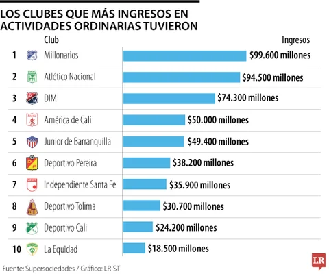 La nueva lista de los clubes de fútbol con mayores ganancias en 2023 ha sido publicada, destacando a Millonarios FC y Atlético Nacional en los primeros puestos. Millonarios, con una destacada gestión financiera y comercial, lidera la tabla con ingresos significativos provenientes de sus exitosas campañas y acuerdos estratégicos.