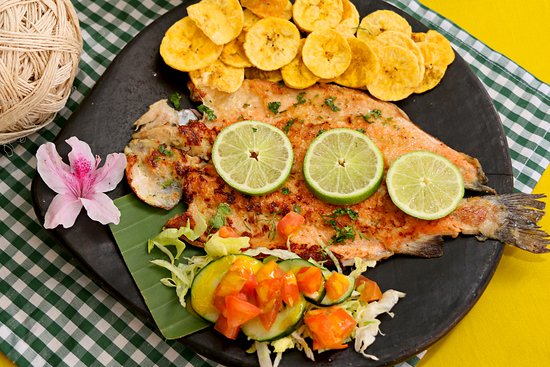Trucha arcoíris asada en su punto, acompañada por guarniciones típicas: un emblema culinario que simboliza la riqueza gastronómica de La Laguna de La Cocha