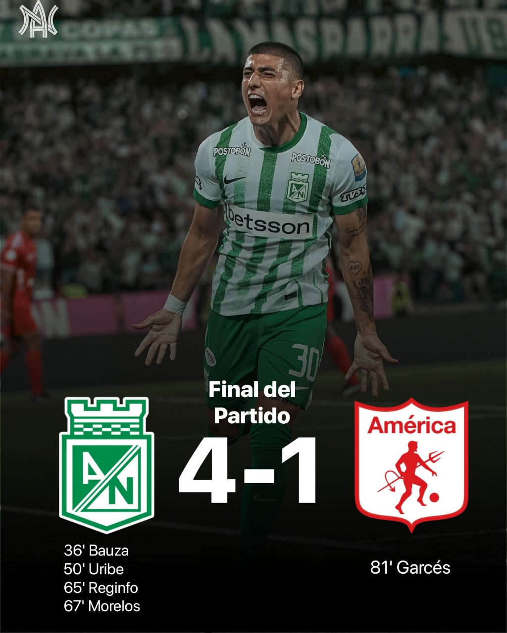 Atlético Nacional dio un golpe de autoridad en el Atanasio Girardot al vencer 4–1 a América de Cali en el partido de ida de la semifinal de la Copa Colombia. Bajo la dirección técnica interina de Diego Arias, el equipo verdolaga mostró una versión sólida, equilibrada y con una convicción que reanimó a su afición. El resultado no solo le otorga una amplia ventaja en la serie, sino que también refuerza la confianza interna en un momento de reconstrucción deportiva.