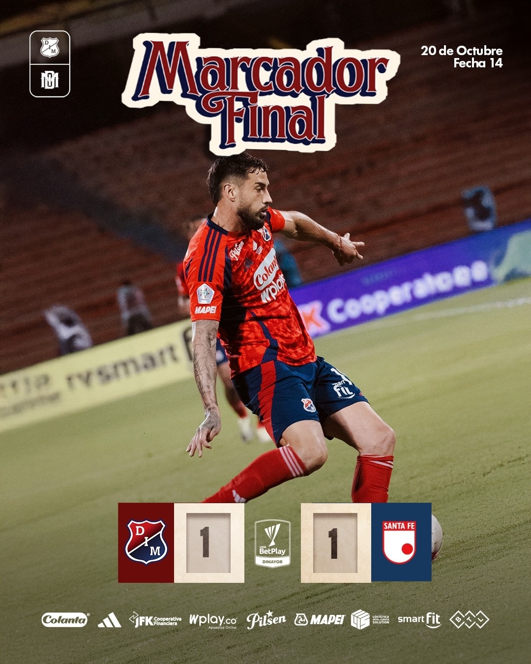 En un vibrante encuentro disputado en el estadio Atanasio Girardot, Independiente Medellín igualó 1-1 ante Santa Fe por la jornada 14 del Torneo Clausura. El