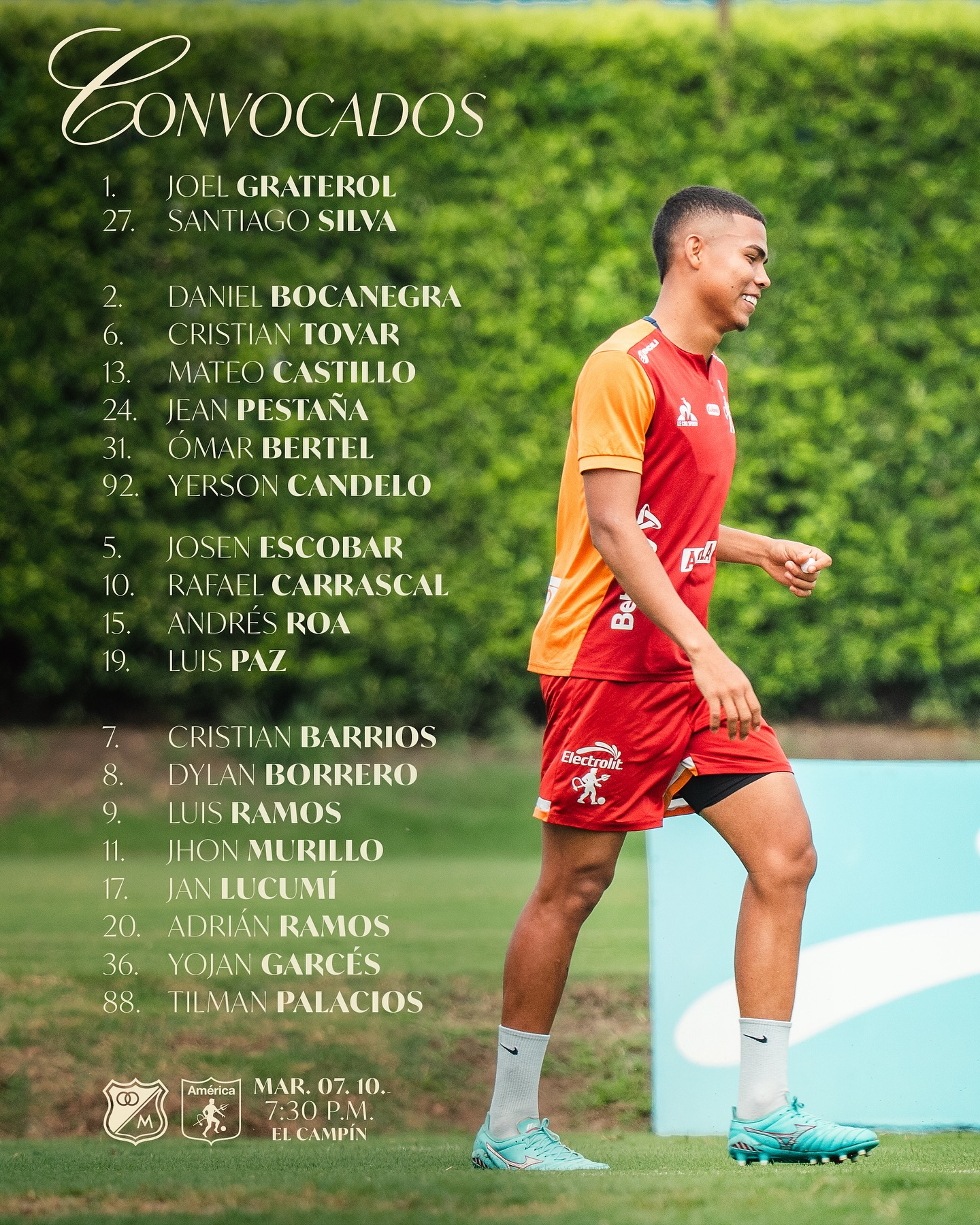 El América de Cali ya tiene todo listo para su compromiso de esta noche frente a Millonarios en el estadio El Campín, y la lista de convocados revela el arsenal con el que los ‘Diablos Rojos’ buscarán romper la racha capitalina. Bajo la dirección de David González, el conjunto escarlata viajó con 20 jugadores, entre ellos referentes como Adrián Ramos, Andrés Roa y Rafael Carrascal, además del portero venezolano Joel Graterol, quien parte como titular fijo.